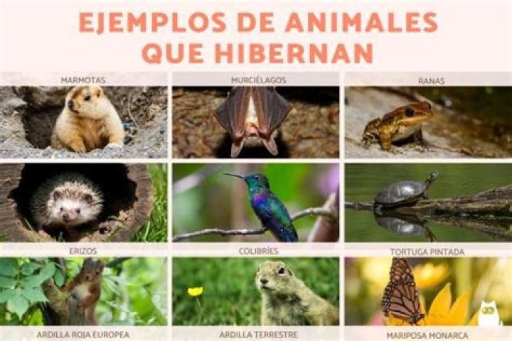 Ranas: Dejan de respirar y su corazón se para por completo. Abejas y abejorros: No todas las abejas hibernan, pero para el abejorro es parte de su vida. Aves: Erizos: Murciélagos: Marmotas: Caracoles: Tortugas: