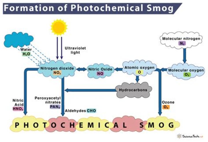 photochemical smog tends to form over, check these out | What does photochemical smog form from?