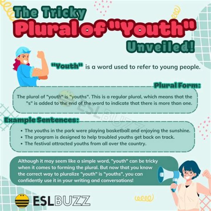 then, ‘youth’ is a collective noun, and the plural form is the same as the singular form, ‘youth. ‘ then, the plural is formed by adding an ‘s’ to the word. In this case, ‘youth’ is singular, and ‘youths’ is plural.