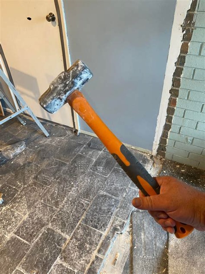 Grab a cold chisel and a three-pound sledgehammer. Be careful not to crack the adjoining tile. Next, hit the hammer on the center of tiles to break them. Use a broom to sweep the floor and empty the debris in a garbage bag.