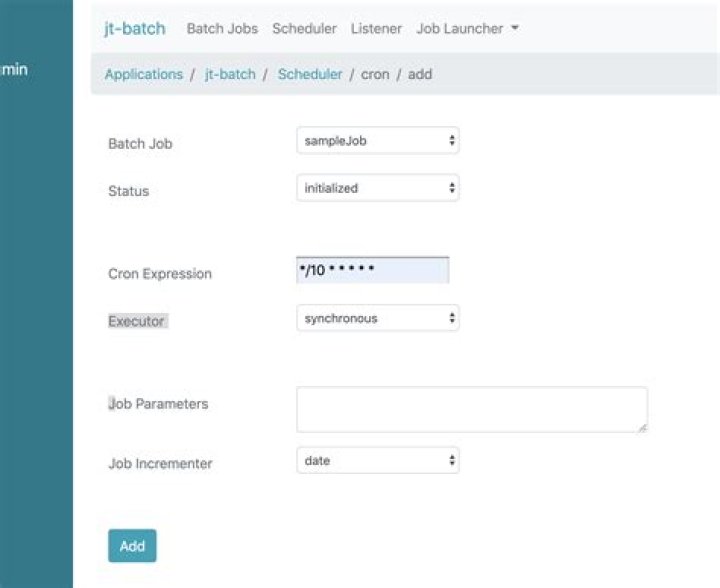 Add the required dependencies to your pom. Write your own Quartz job to launch your job using Spring’s QuartzJobBean .Configure a JobDetailBean provided by Spring to create a Quartz JobDetail.