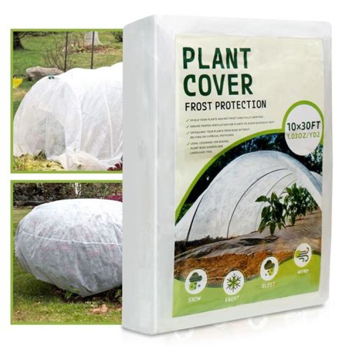 To protect from frost, alternatives to row cover include frost blankets, plastic coverings, and tarps. These materials should just cover plants at night, especially when temperatures drop below 30ºF. Double layers of materials will provide even more protection when temperatures drop below 28ºF.