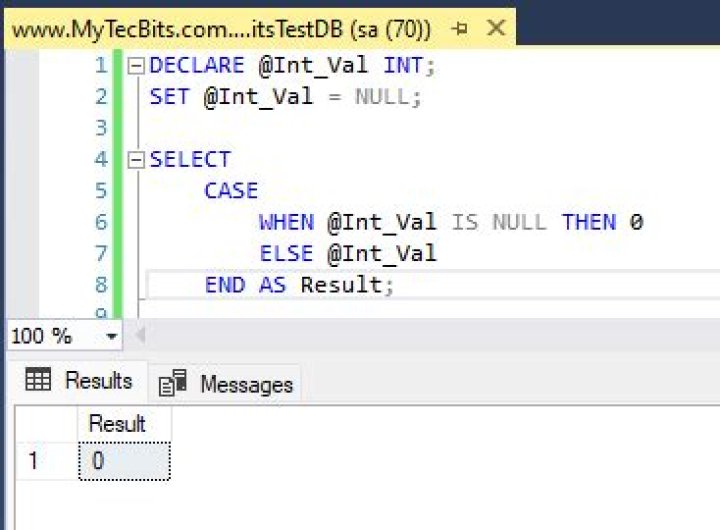 We can replace NULL values with a specific value using the SQL Server ISNULL Function. The syntax for the SQL ISNULL function is as follow. The SQL Server ISNULL function returns the replacement value if the first parameter expression evaluates to NULL.