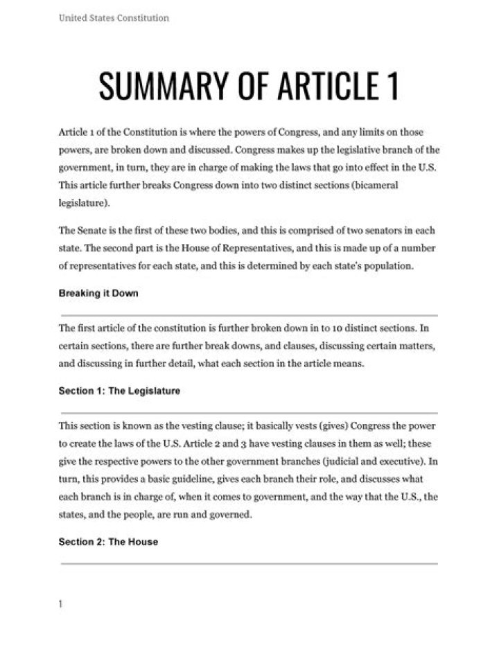 What is a summary of Article 1 in the Constitution?
