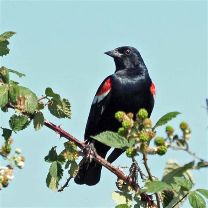 Tricolored Blackbirds have many predators, particularly larger birds such as night-herons, ibis, and ravens, and mammals such as coyotes and raccoons. Intense predation can even cause an entire colony to vacate.