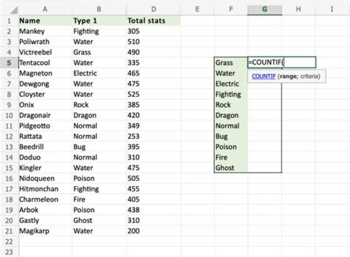 Open the “Excel spreadsheet” you wish to examine.Click on an “empty cell” to type the formula.In the empty cell, type: “ =COUNTIF (range, criteria) .” This formula counts the number of cells with text in them from within your specified cell range.