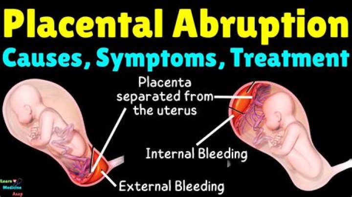 Placental abruption occurs when the placenta separates from the uterus during pregnancy. Abruption can be either partial or complete. The condition occurs most commonly in the third trimester. It is the most common placental disorder and occurs in up to 1 out of every 100 pregnancies.