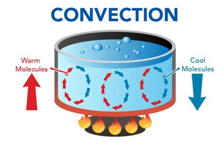 convection Add to list Share. Convection is the circular motion that happens when warmer air or liquid — which has faster moving molecules, making it less dense — rises, while the cooler air or liquid drops down. Convection ovens use fans to circulate heat so that whatever you’re cooking cooks faster and more evenly.