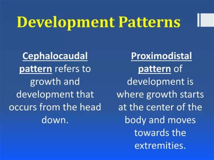 Cephalocaudal development refers to growth and development that occurs from the head down (gains muscle control) whereas proximodistal development occurs from the centre or core of the body in an outward direction.