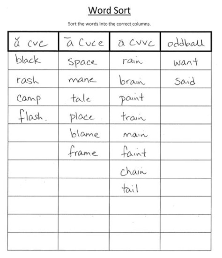 In many of their word sorts, 鈥渙ddball鈥 words are included. For example, in their ai word sort from Word Sorts for Within Word Pattern Spellers, said is included as an oddball word because it fits the visual pattern of ai, but does not have the long a sound. This is just one to way to integrate phonics and sight words.