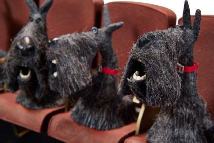 Original three-dimensional, camera-used puppets of Miss Spink’s and Miss Forcible’s Scottie Dogs from when they were the audience in the Other World. This set has six Scottie Dogs sitting in their respective theater seats as they applaud and bark and watch their owners performing on stage.