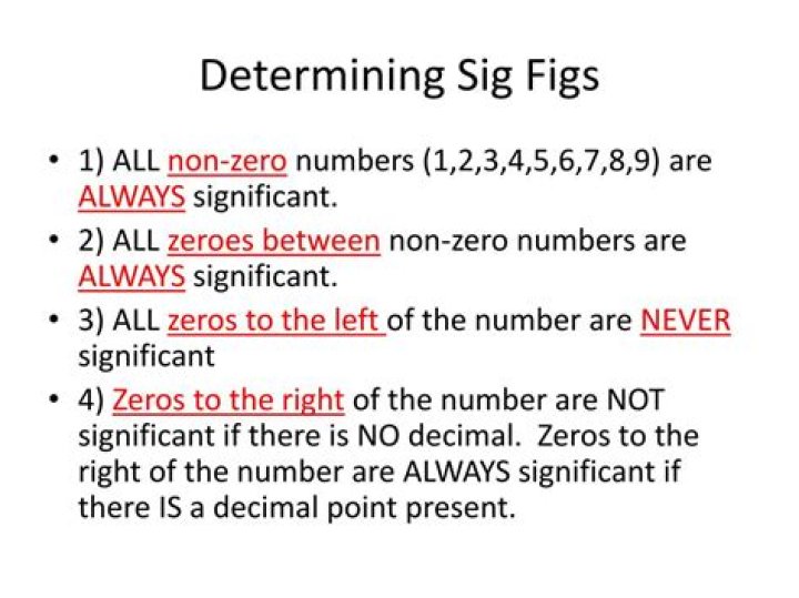 All non-zero numbers ARE significant. Zeros between two non-zero digits ARE significant. Leading zeros are NOT significant. Trailing zeros to the right of the decimal ARE significant. Trailing zeros in a whole number with the decimal shown ARE significant.