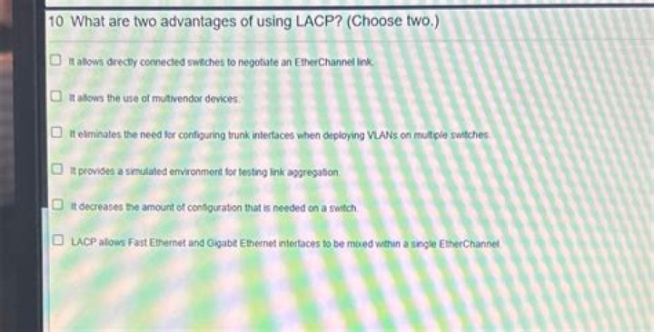 what are two advantages of using lacp? (choose two.), check these out | What are 2 advantages of using LACP?