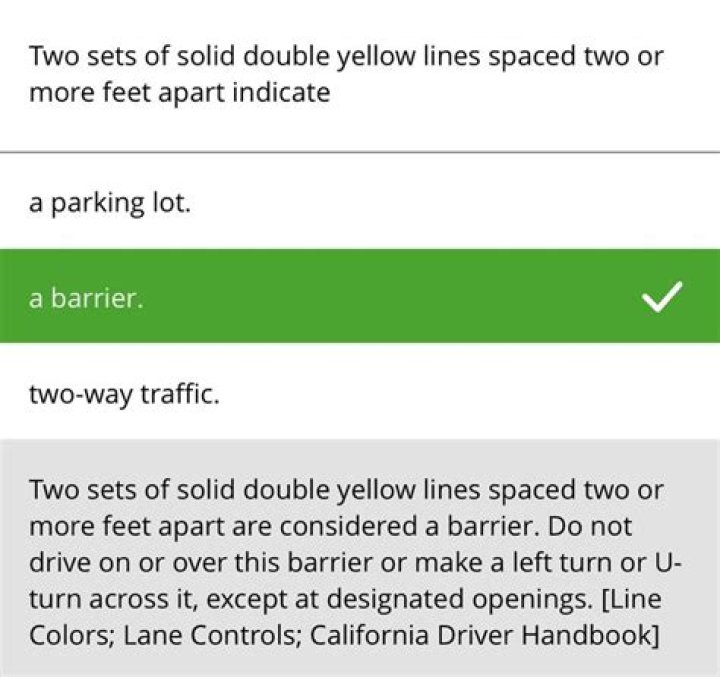 Two sets of solid double yellow lines spaced 2 feet or more apart are considered a barrier. Do not drive on or over this barrier, make a left turn, or a U-turn across it, except at designated openings (see diagram).
