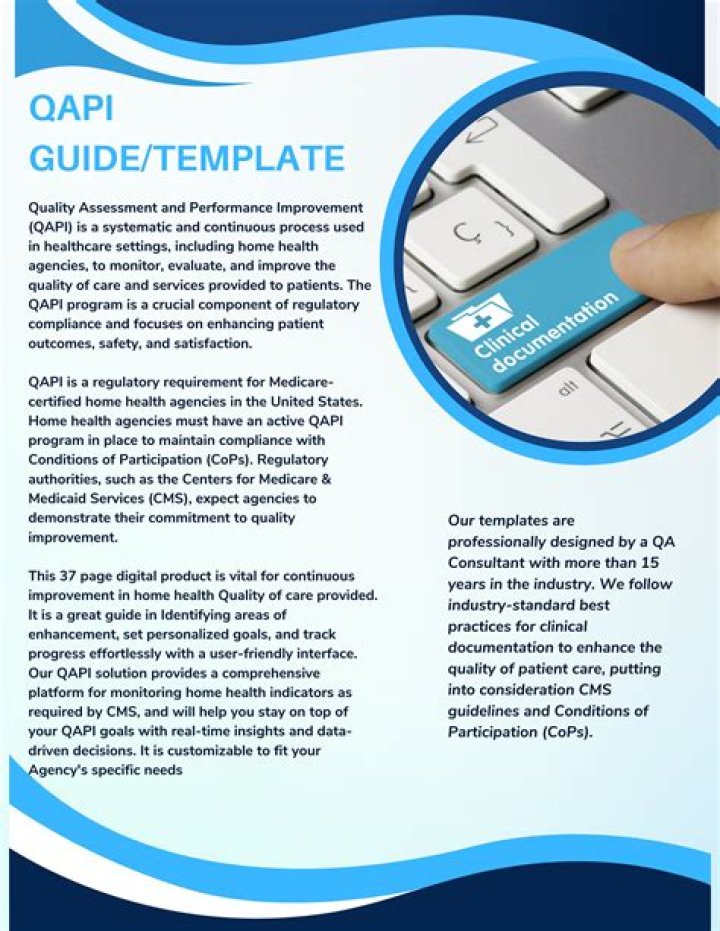 Quality Assurance and Performance Improvement (QAPI) is a data driven and proactive approach to quality improvement. It combines two approaches – Quality Assurance (QA) and Performance Improvement (PI). QA is a process used to ensure services are meeting quality standards and assuring care reaches a certain level.