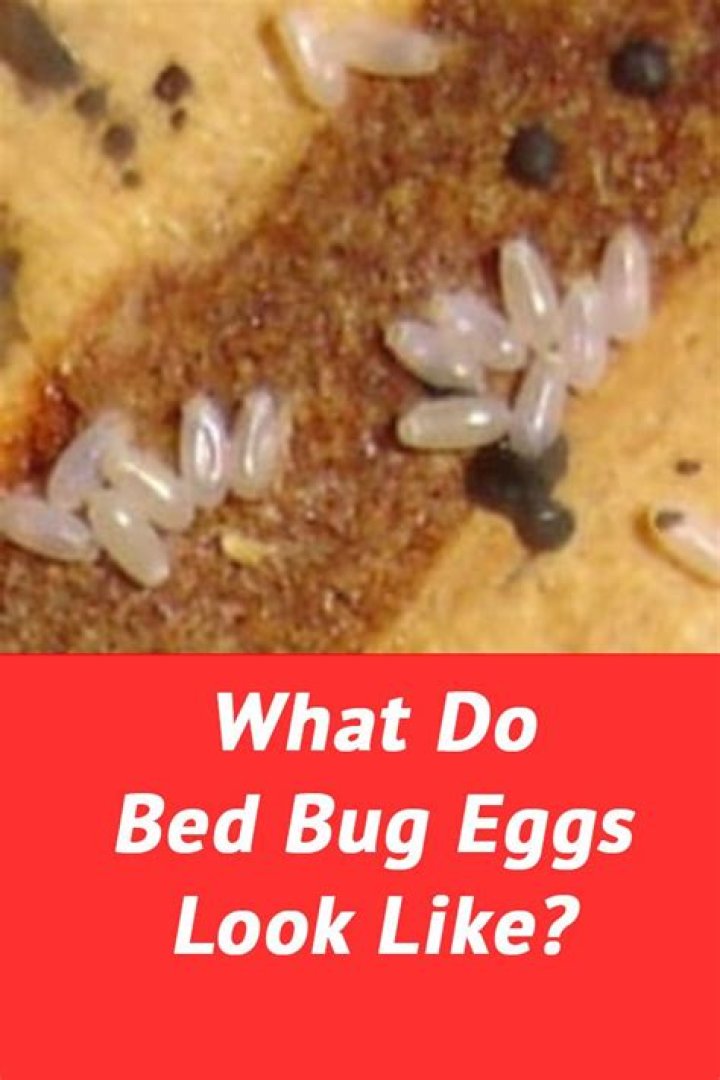 Bed bug eggs are small (around 0.1 inches, 2.5mm) long and appear white or semi-transparent, similar to a grain of uncooked white rice. They will be sticky to the touch and usually clustered together.