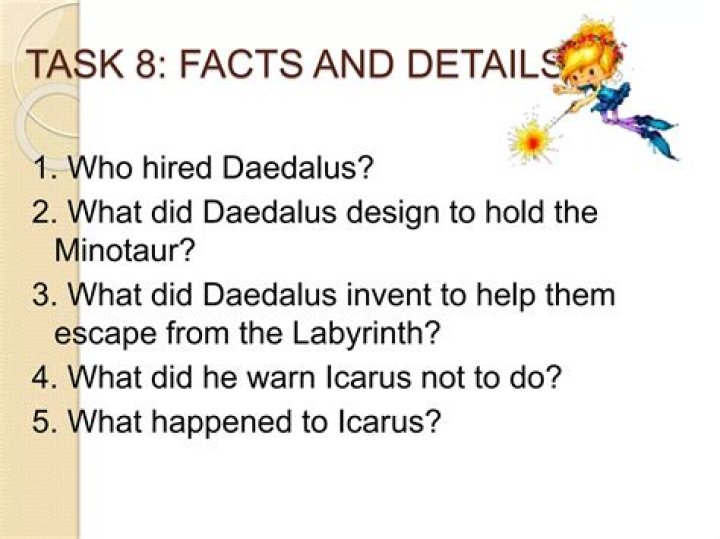 In Greek mythology, Daedalus was a skilled craftsman and inventor who designed and built the Labyrinth on Crete, where the Minotaur was kept. Daedalus also made the wings that he and his son Icarus used to escape from Crete.
