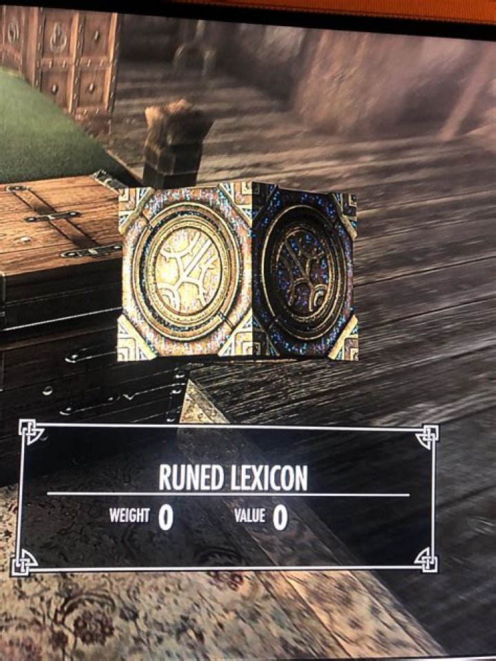 After filling it during the quest “Discerning the Transmundane,” it becomes the Runed Lexicon and is given to Septimus Signus after the quest. If his remains are looted, the Runed Lexicon can be recovered. However, it has no use other than possibly decorating the home.