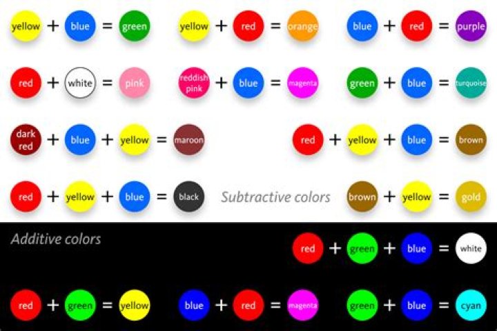 When green and blue lights mix, the result is a blue. When the blue and red lights mix, the result is magenta. Red-green–blue additive mixing is used in television and computer blur display unit|monitors]], including smartphone displays, to produce a wide range of colors.