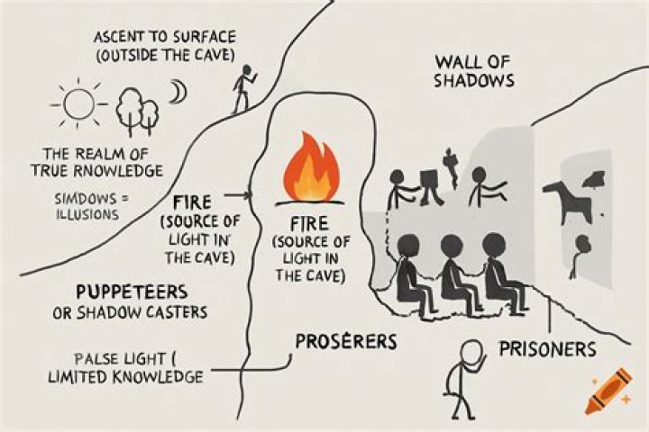 Plato’s “Allegory of the Cave” is a concept devised by the philosopher to ruminate on the nature of belief versus knowledge. The allegory states that there exists prisoners chained together in a cave. Behind the prisoners is a fire, and between the fire and the prisoners are people carrying puppets or other objects.