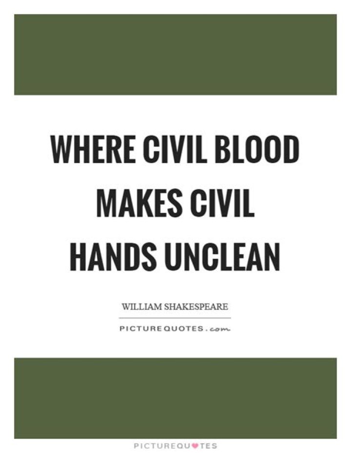 The phrase “where civil blood makes civil hands unclean” is a line from Shakespeare’s Romeo and Juliet, referring to the ongoing dispute