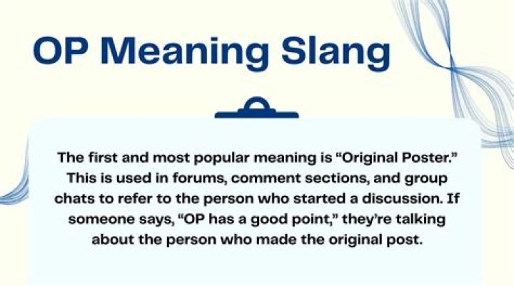 The original poster is the person who started a discussion thread, and OP is used to refer back to that person as the responses grow. The term is used most often in messaging or online forums, where ‘OP’ refers to the person who originally posted a question or comment.