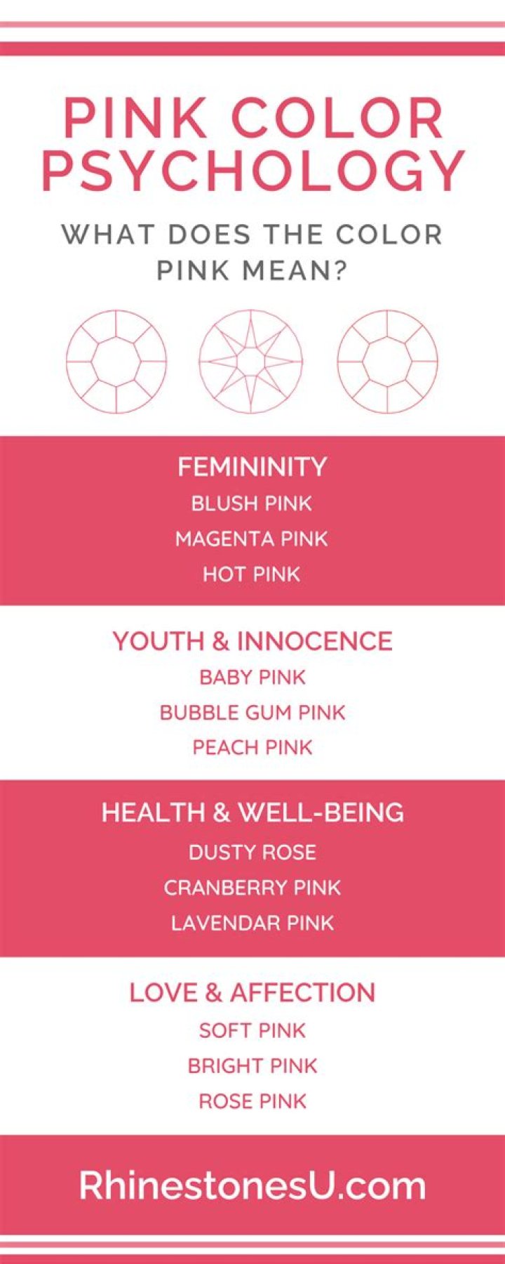 The color pink, for example, is thought to be a calming color associated with love, kindness, and femininity. Many people immediately associate the color with all things feminine and girly. It might also bring to mind romance and holidays such as Valentine’s Day.