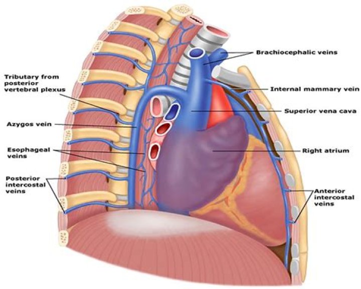 Azygos vein. Left upper posterior intercostal veins to drain the upper thorax.