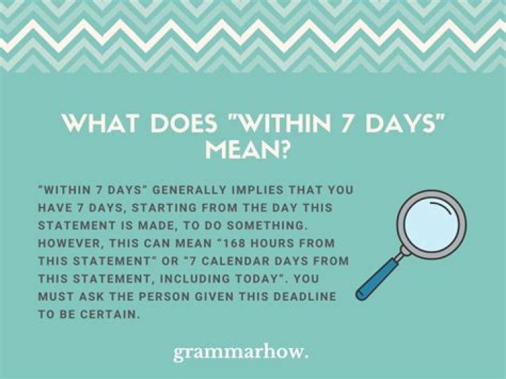 If I ask to have something down “within a day” I mean 24 hours from now – today is day 0 and tomorrow is day 1, the day that it is due. So “within 7 days” means it is due on day 7, counting today as day 0.