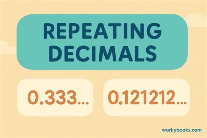 A more complicated example is 3227555, whose decimal becomes periodic at the second digit following the decimal point and then repeats the sequence “144” forever, i.e. 5.8144144144. At present, there is no single universally accepted notation or phrasing for repeating decimals.