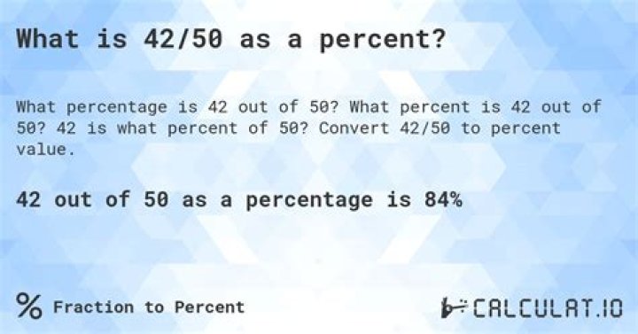 Percentage Calculator: 42 is what percent of 50? = 84.