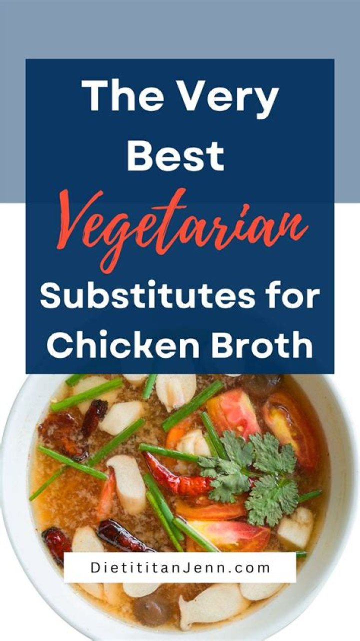 Some of the best vegetarian and vegan substitutes for chicken broth are vegetable bouillon cubes, mushroom stock, kombu broth, miso paste, or soy sauce. What is this? Yon can use one substitute or mix several together, to get the taste as close as you can.