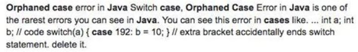 Orphaned Case Error. In Java, it is the rarest error that does not occur usually. The error occurs while dealing with the switch statement.