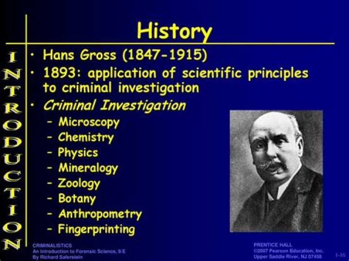 Austrian professor and judge Hans Gross is often considered one of the founders of criminalistics for his research on the subject and the release of his 1891 book, Criminal Investigation. It was the first work of its kind to be published. Gross went on to publish other important research in the field of criminalistics.