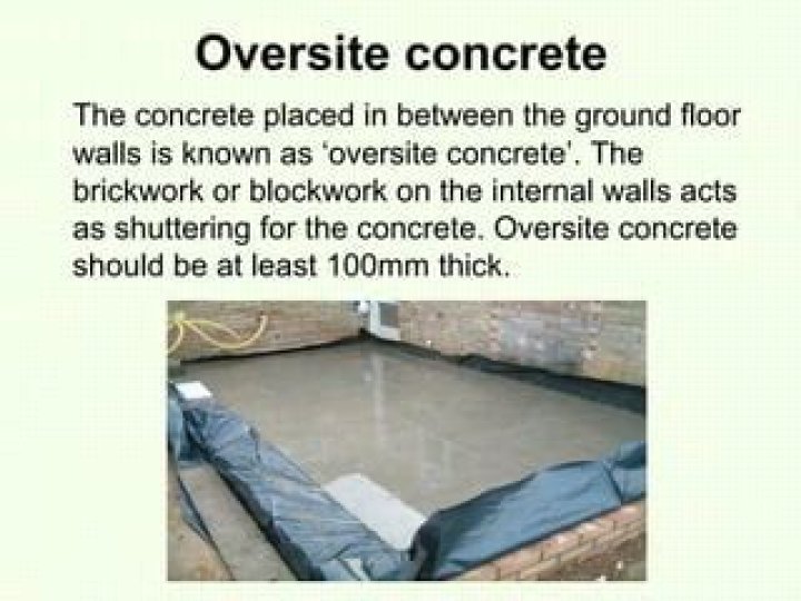 Oversite. We inspect the way you prepare the area underneath the floor before you add concrete or cover (known as the oversite). For example: hardcore – hard non- absorbing materials for filling such as broken bricks, stone or concrete.