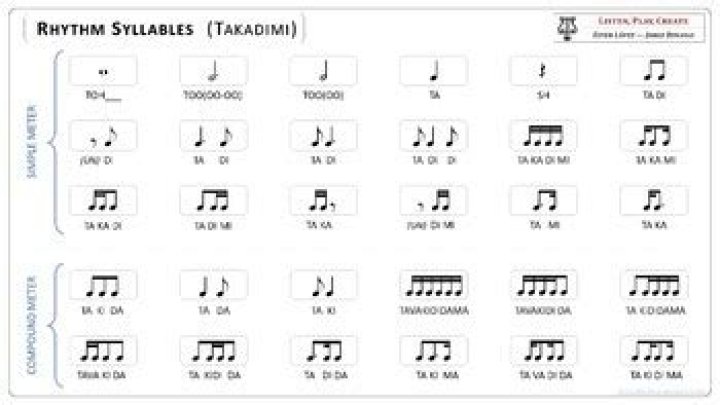 Beat unit: the number of the beat (e.g. ‘one’, ‘two’,)1st Division: ‘ta’ in simple time; ‘la li’ in compound time.Subdivision: ‘ka’ in both simple and compound time.Triplets: ‘la li’ (or ‘ka ki’ if at level of subdivision)Duplets: ‘ta’