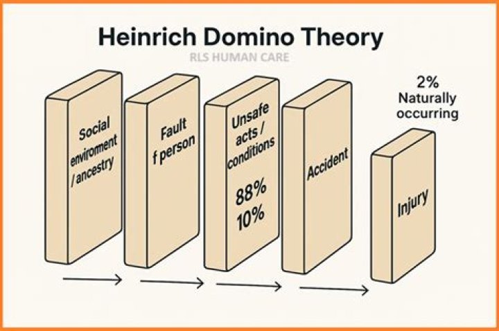 Heinrich posits five metaphorical dominoes labelled with accident causes. They are Social Environment and Ancestry, Fault of Person, Unsafe Act or Mechanical or Physical Hazard (unsafe condition), Accident, and Injury.