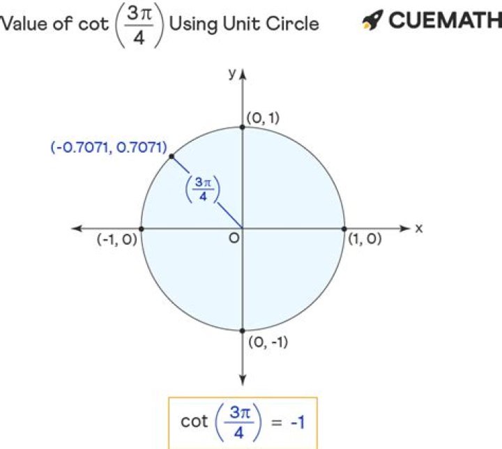 The value of cot 3pi/4 is -1. Cot 3pi/4 can also be expressed using the equivalent of the given angle (3pi/4) in degrees (135°).