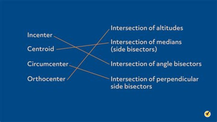 The centroid of a triangle is the point at which the three medians meet. The orthocenter is the point of intersection of the altitudes of the triangle, that is, the perpendicular lines between each vertex and the opposite side.