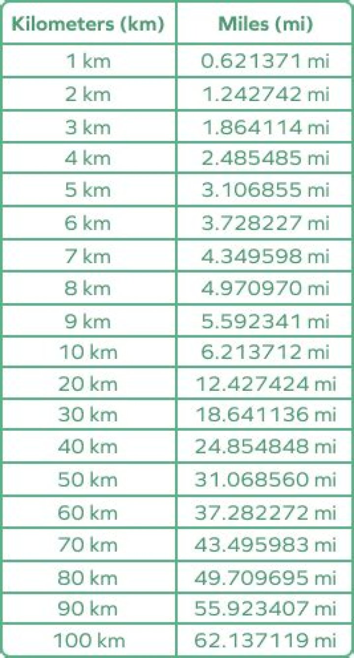 What is the equivalent of 1 km to 1 mile?