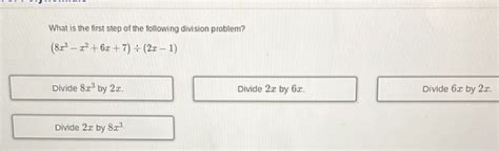What is the first step of the following division problem 8x 3 x 2 6x 7?