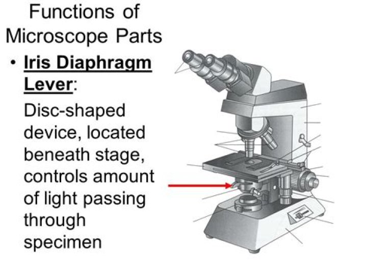 Where is the iris diaphragm lever on a microscope?