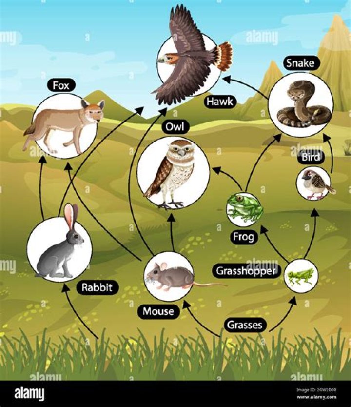 Each living thing is a part of multiple food chains – for example, grass is a part of the food chain: grass → grasshopper → frog → snake → eagle, and also of the food chain: grass → deer → tiger. All of the interconnected and overlapping food chains in a habitat make up a food web.