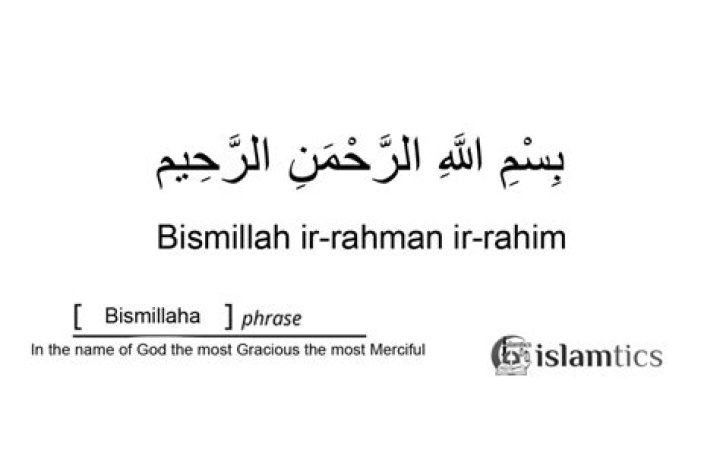 The Basmala (Arabic: بَسْمَلَة, basmalah; also known by its incipit Bi-smi llāh; بِسْمِ ٱللَّٰهِ, “In the name of Allah”, or Tasmiyah, تَسْمِيَّة) is the Islamic phrase “In the name of God, the Most Gracious, the Most Merciful” (Arabic: بِسْمِ ٱللَّٰهِ ٱلرَّحْمَٰنِ ٱلرَّحِيمِ, bi-smi llāhi r-raḥmāni r-raḥīmi).