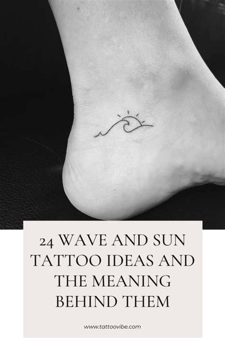 9. Wave and Sun Tattoo. Many people view the sun as a source of light and power, while the oceans’ moving water symbolizes life’s highs and lows. The combination of the sun and a wave is a simple but impactful tattoo. For some, it can be seen as going with the flow; for others, it is nature’s balance.
