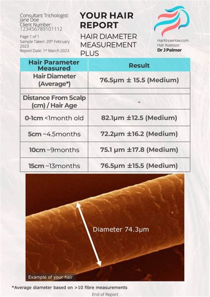 “Hair with a small diameter—or fine hair—has a typical diameter of about 50 microns,” Spengler explains. “Hair with a larger diameter—or coarse hair—has a typical diameter of about 120 microns.”