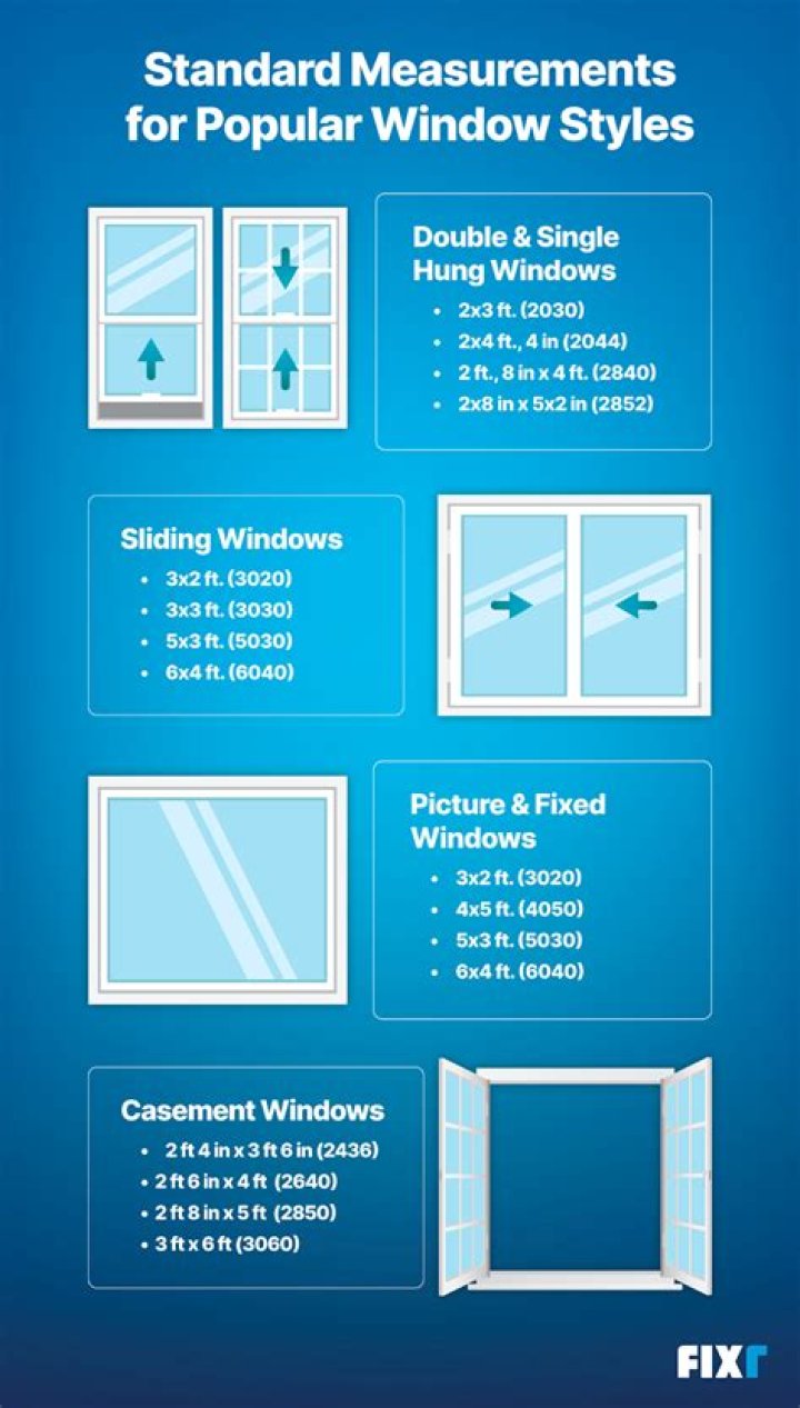 The most common window size or average window size is 24×36. All common window sizes & dimensions for fixed, standard & double-hung windows can differ on manufacture.