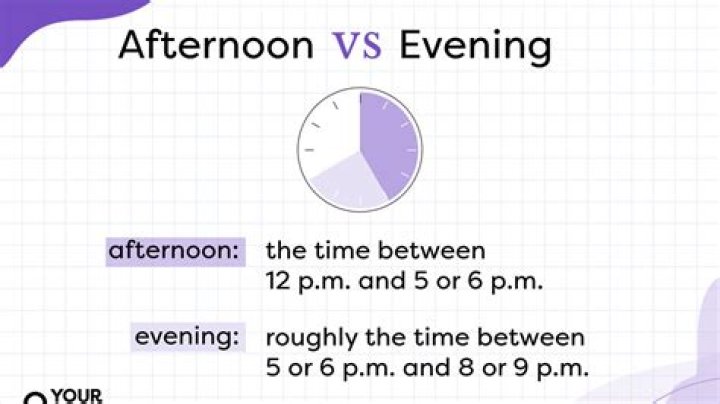 12:01 p.m. – 5:59 p.m. is afternoon. 6:00 p.m.- 11:59 p.m. is evening.