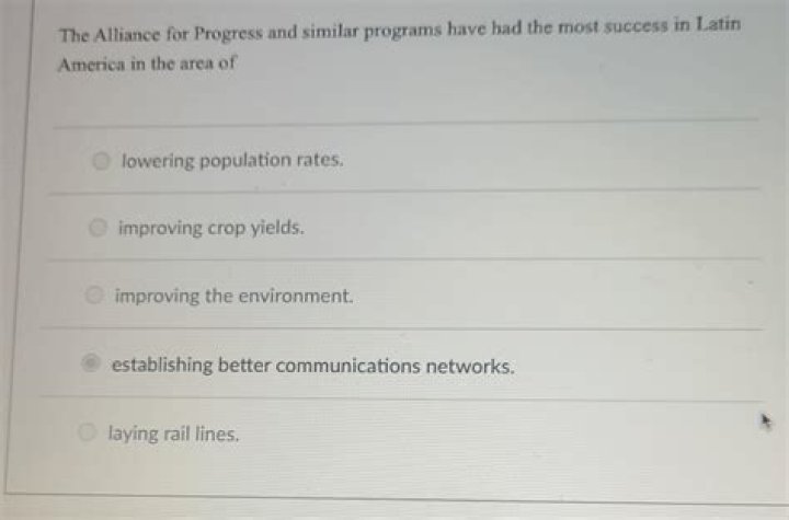 what was the outcome of the alliance for progress program?, check these out | What was the Alliance for Progress quizlet?