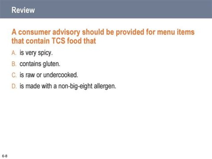 A consumer advisory is a statement about the risks of eating raw or undercooked menu items. If you serve any undercooked animal products at your establishment, the FDA requires you to publish a consumer advisory. Undercooked animal products carry an increased risk of foodborne illness.